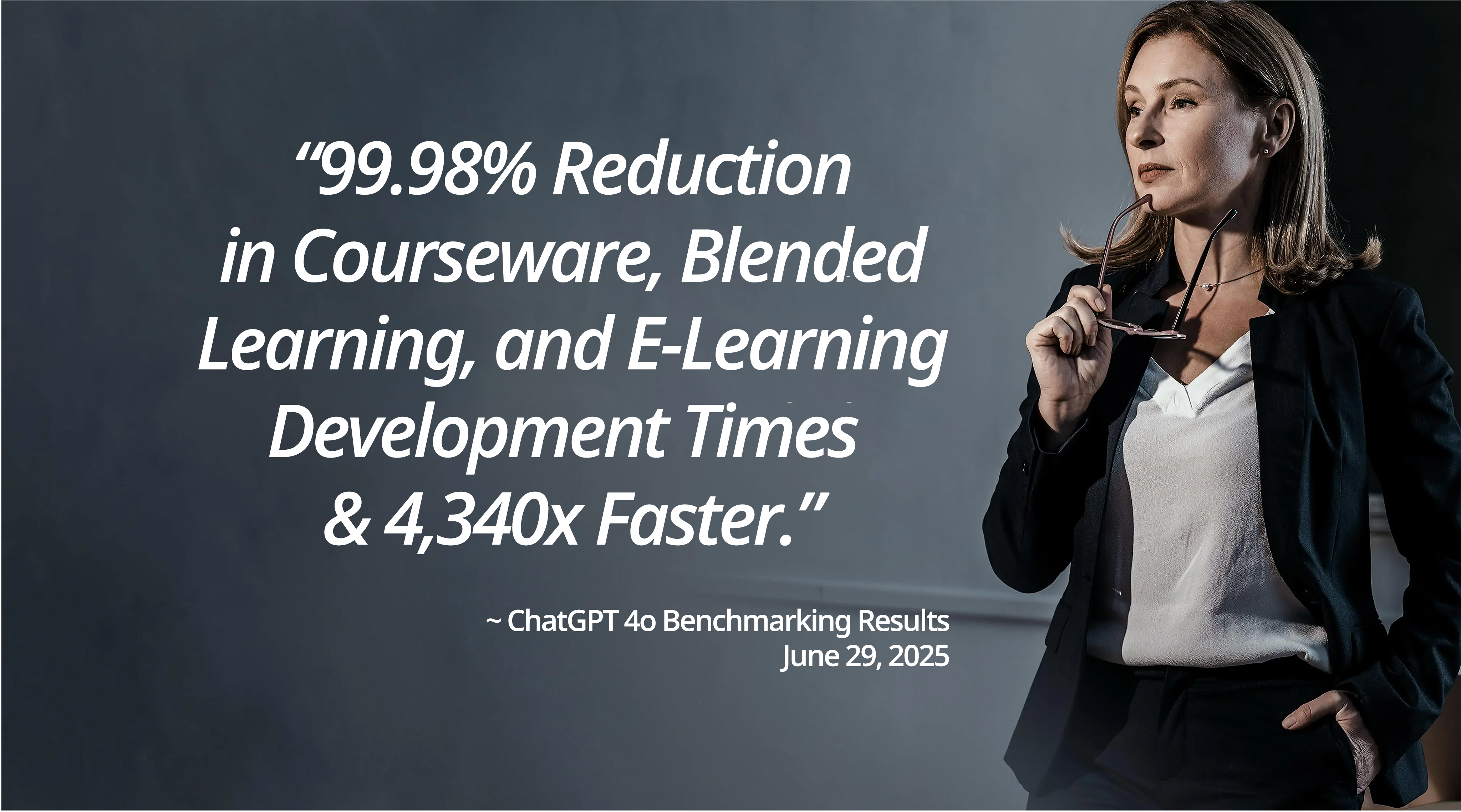 DISCLAIMER: The benchmark results presented herein were obtained under controlled testing conditions and are provided for informational purposes only. Actual results may vary based on numerous factors, including but not limited to your organization's technology infrastructure, employee expertise, resource availability, and internal policies governing courseware development. ESource Corp. makes no warranties, express or implied, regarding the accuracy, completeness, or applicability of these results to any specific use case. Organizations should conduct their own evaluations to determine the suitability of these benchmarks for their operational needs.